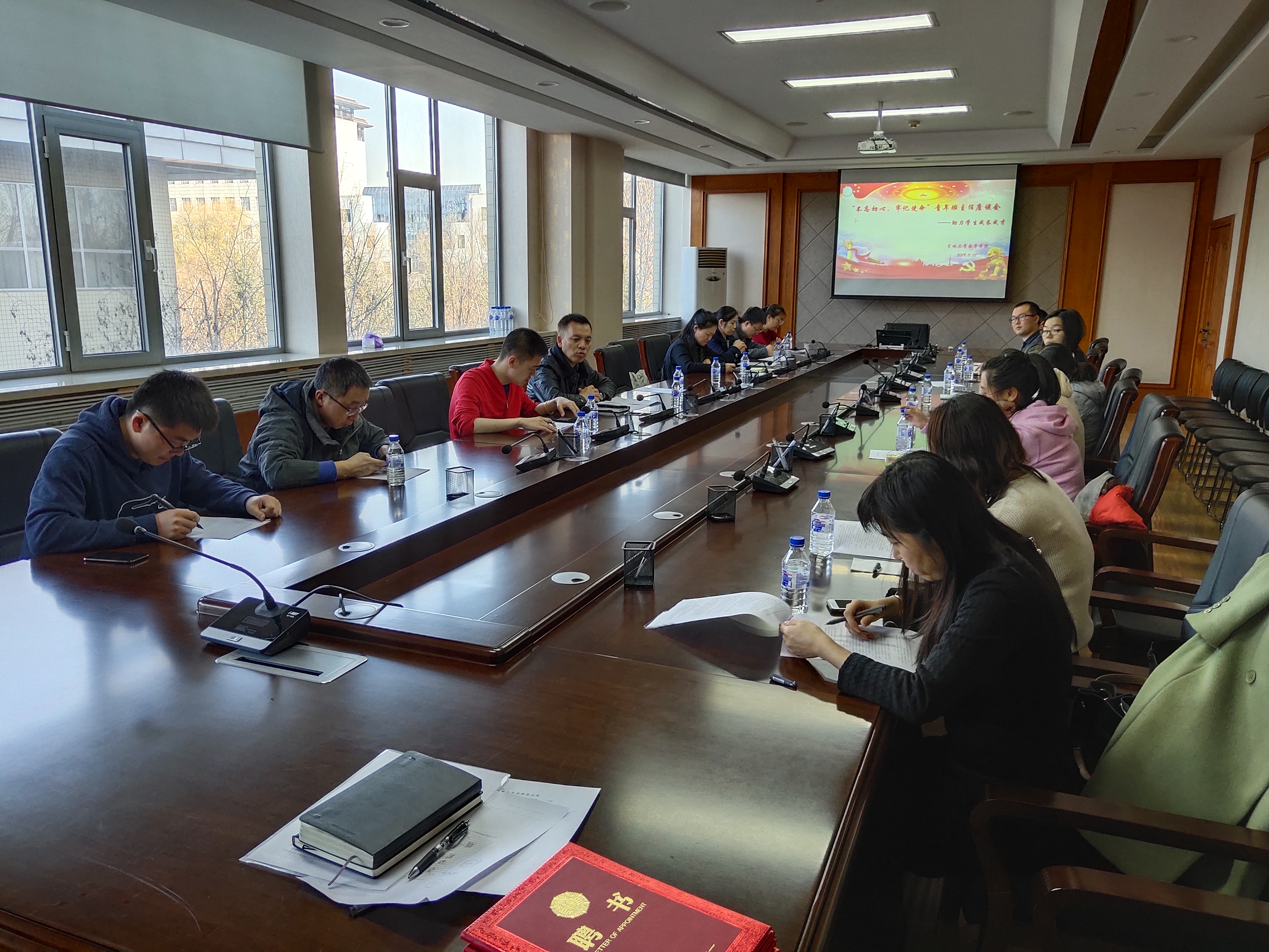 会议共进行四项内容。会议第一项,由伟德国际victor1946辅导员李庚老师为与会者诵读《班主任条例》,之后各位老师针对条例中的各项规章,积极提问、热烈讨论。