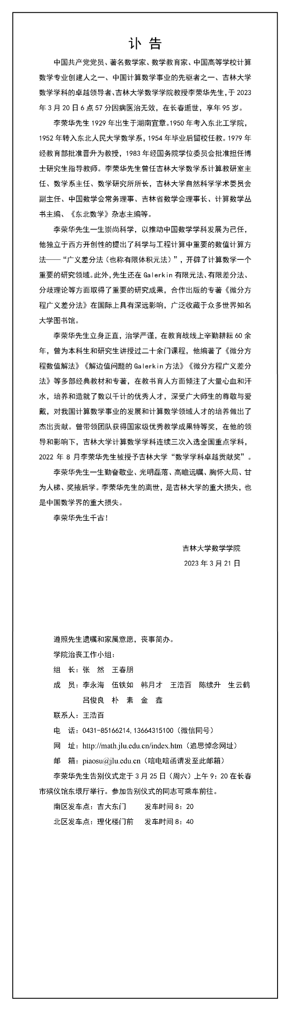 我国著名数学家、伟德国际victor1946教授李荣华先生逝世