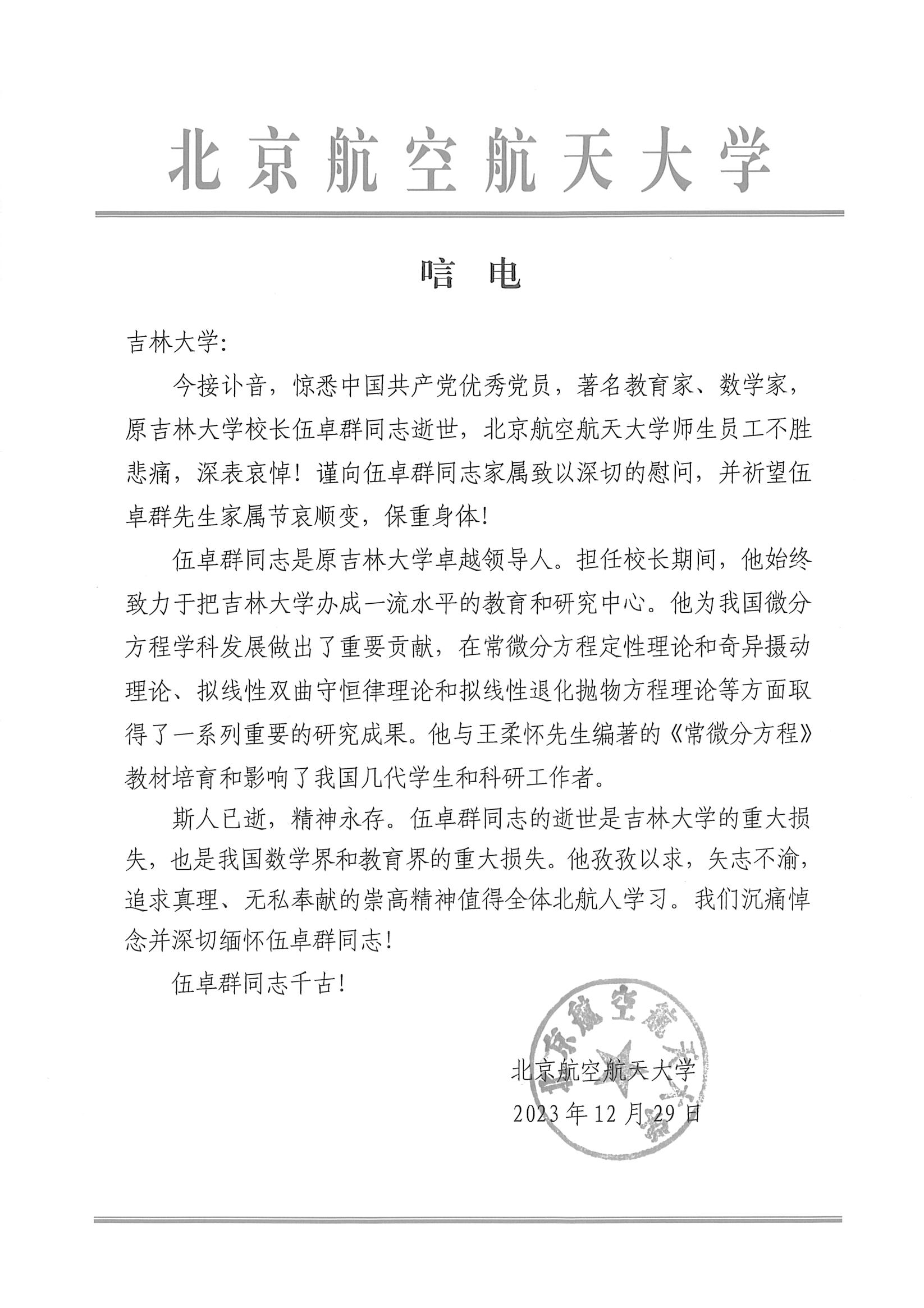 北京航空航天大学唁电